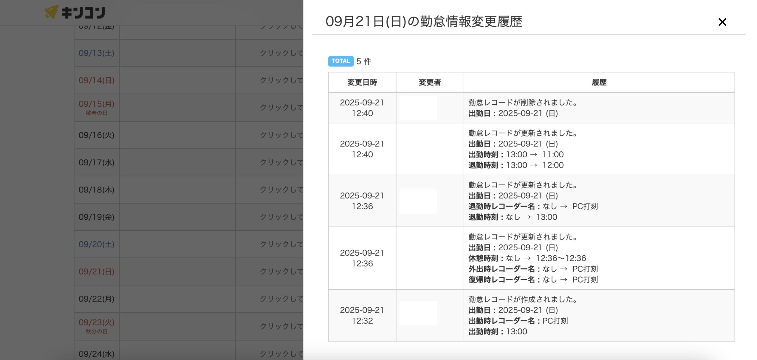 ここでは変更者の名前を隠していますが、誰が変更したかしっかり表示されています。