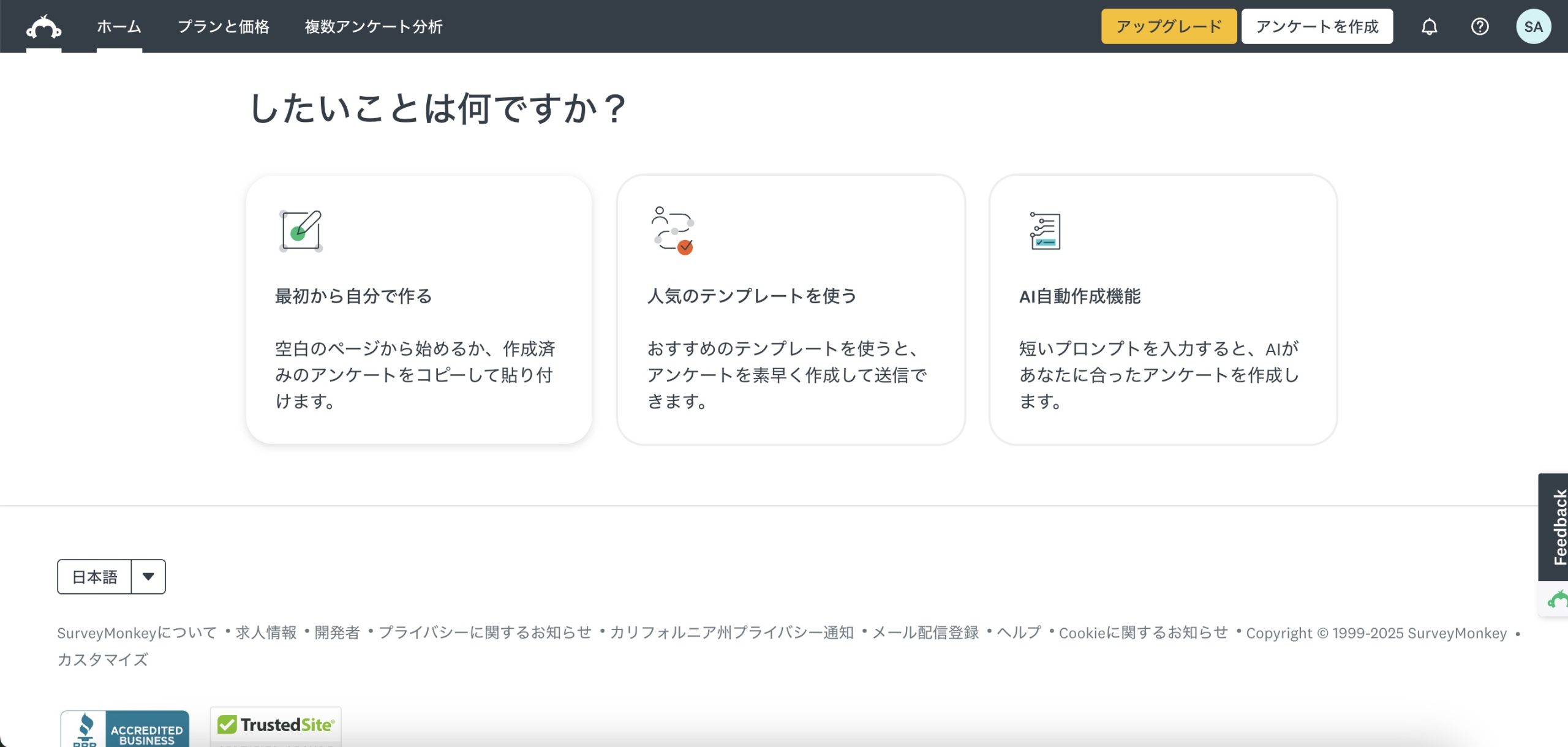 SurveyMonkeyの料金プラン